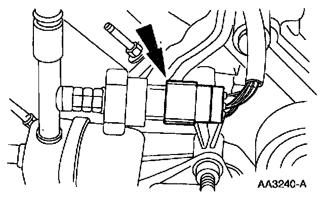 27. Connect the RH heated oxygen sensor electrical connector and snap into the transmission oil level indicator tube.