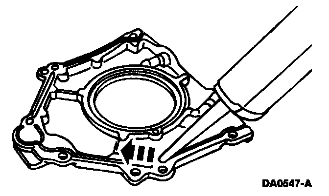 Apply a bead of silicone around the rear oil seal retainer sealing surface.