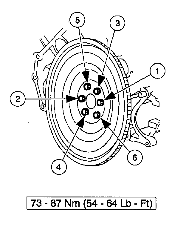 7. Install the flywheel and the bolts. Tighten the bolts in the sequence shown.