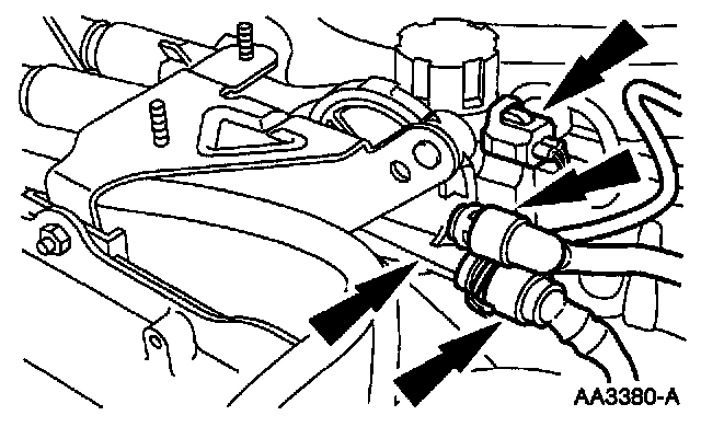 32. Connect the three hoses and the canister purge valve electrical connection.