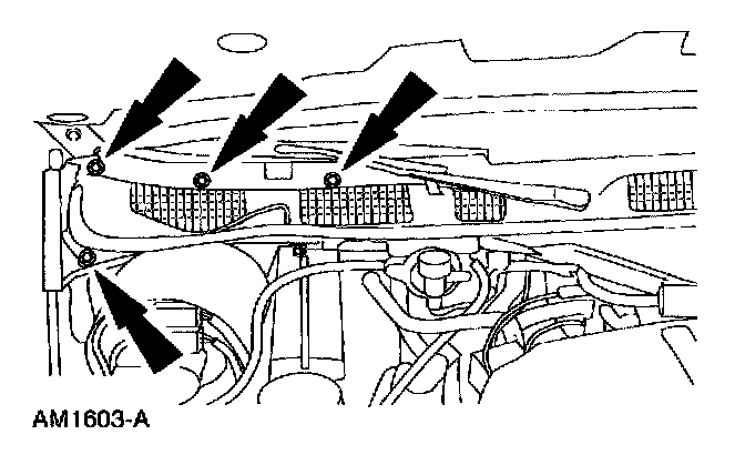 6. Remove the screws and the pin-type retainer and reposition the cowl top cover to access the duct nut.