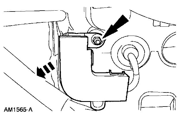 8. Remove the nut and position the harness cover aside.