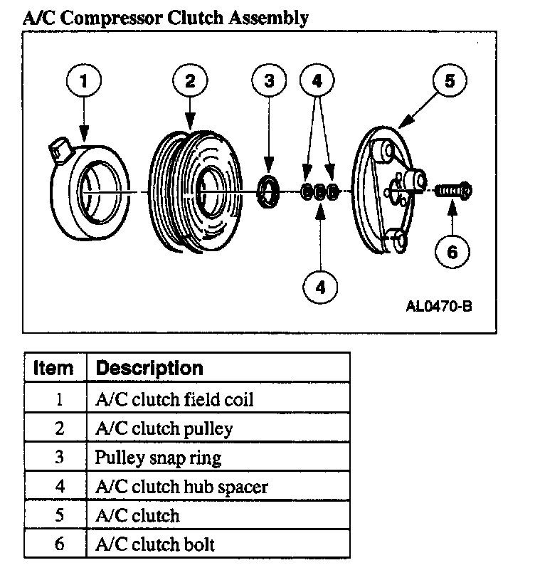 - When B+ is removed from the A/C clutch field coil, springs in the clutch disc and hub assembly move the clutch disc away from the A/C clutch pulley.