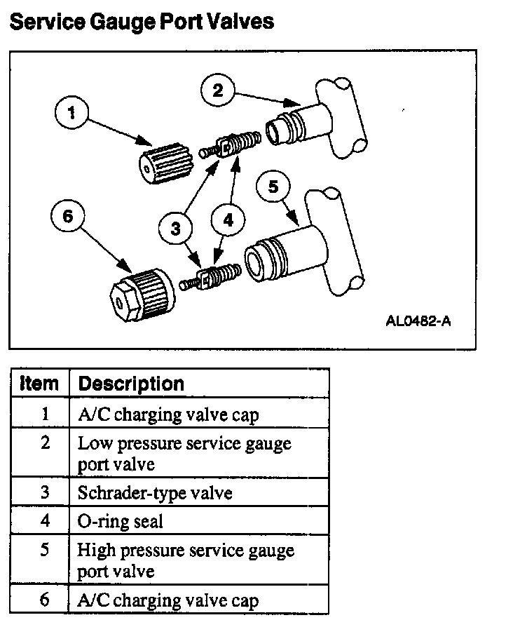 - Always install the A/C charging valve cap on the service gauge port valves afier repairing the refrigerant system.