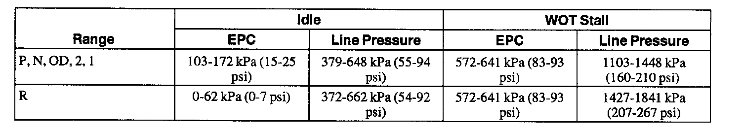 3. If line pressure is not within specification, check Electronic Pressure Control (EPC) pressure.