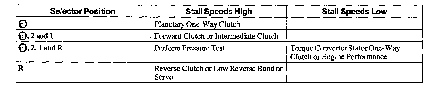 6. Refer to the stall speed diagnosis chart for corrective actions.