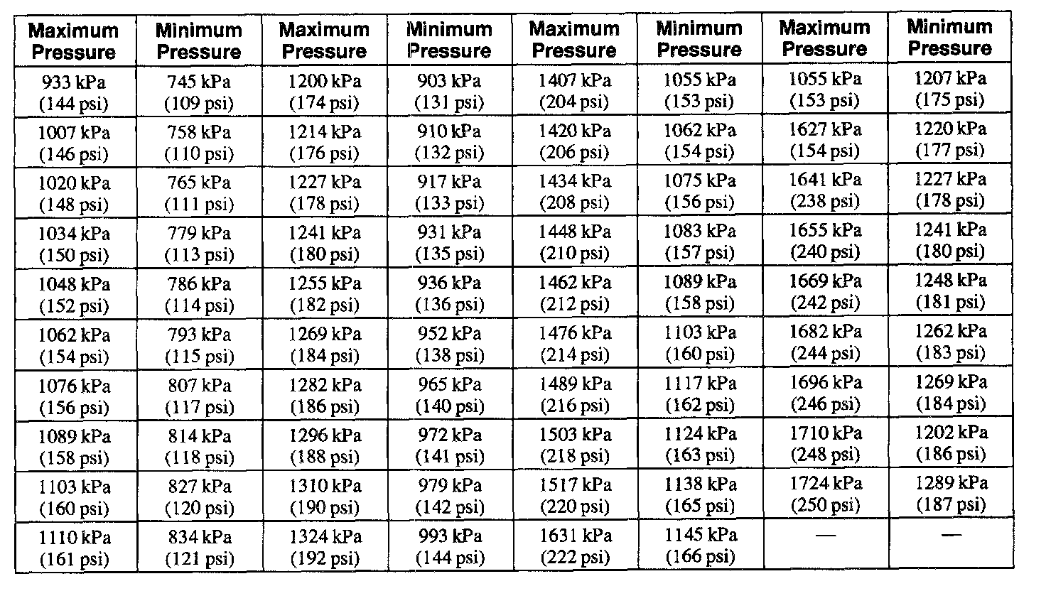 Compression Pressure Limit Chart (Part 2 Of 2):
