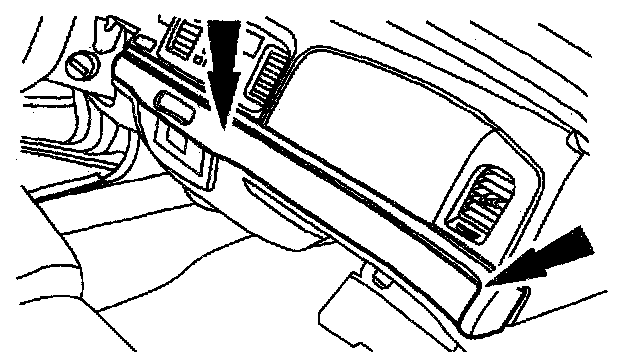 2 Placing one hand in the glove box opening, push the passenger air bag out from the instrument panel and remove it.