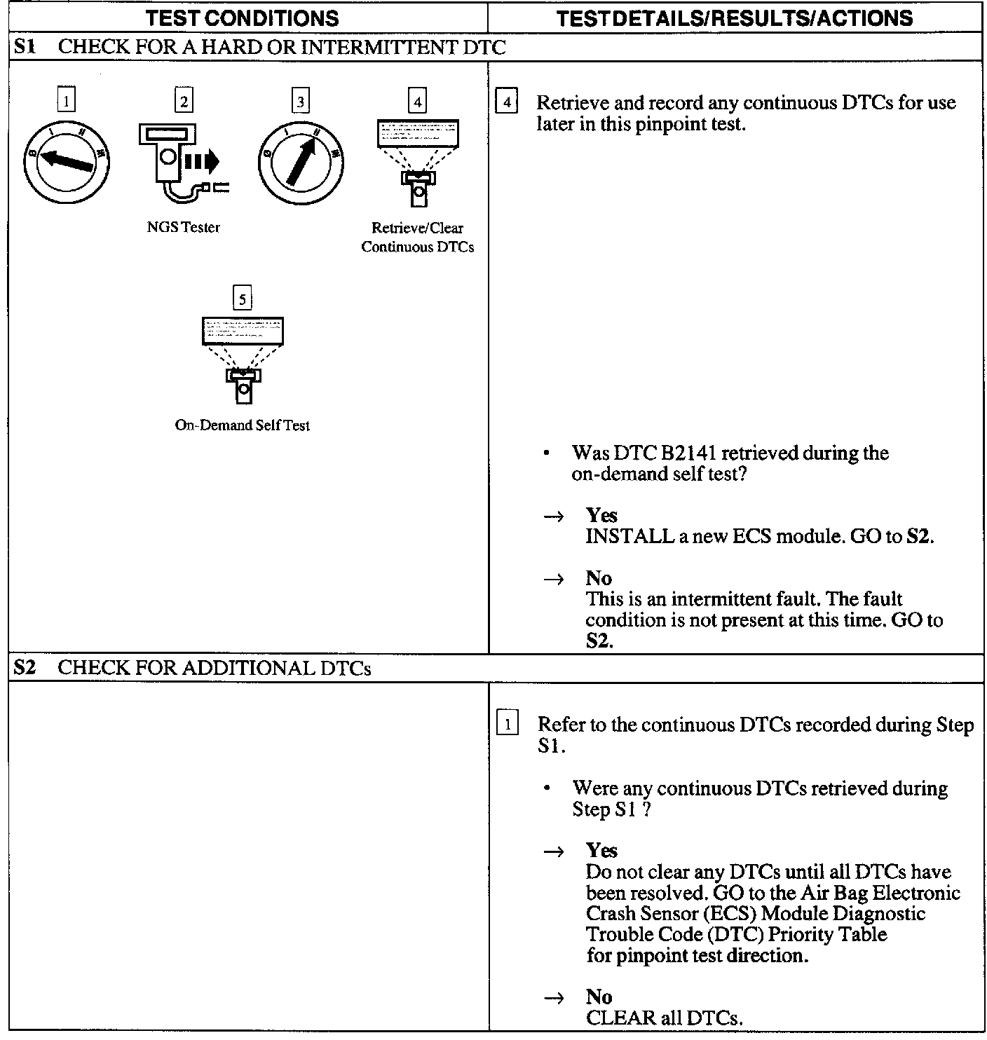 If the ECS detects the incorrect configuration, it will store a Diagnostic Trouble Code (DTC) B2141 in memory and flash airbag indicator five times per second.