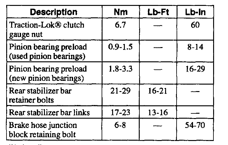 Torque Specifications