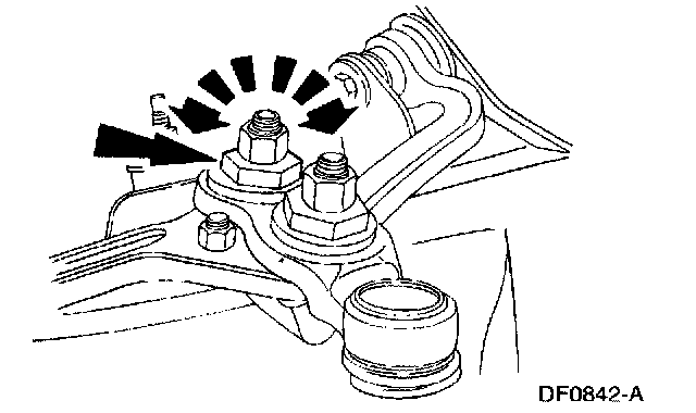 ^ To decrease camber, rotate the adjustment cam counterclockwise.