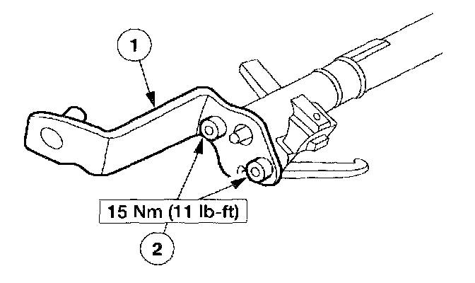 11. Install the transmission selector lever arm and support on the shift tube.