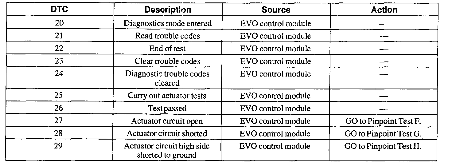 EVO Control Module Diagnostic Trouble Code Index