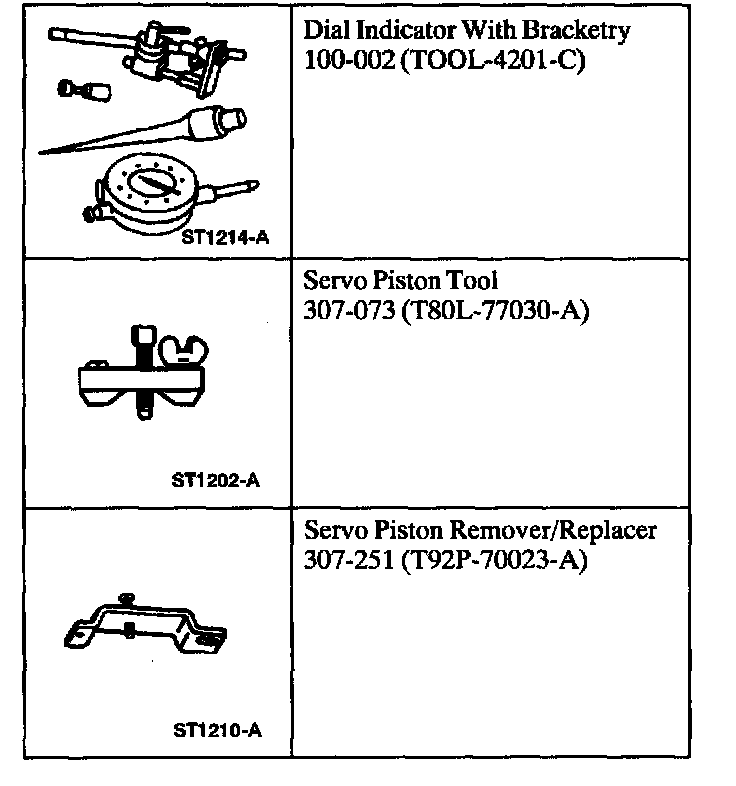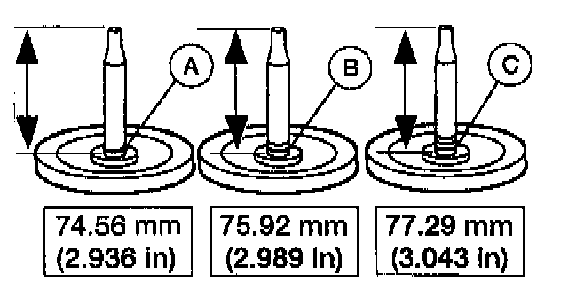 6. If piston travel is not within specification, select the proper servo assembly (A) one groove, (B) two groove or (C) three groove, to bring the servo piston travel within specification.