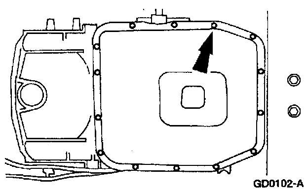NOTE: The transmission fluid pan gasket is reusable, clean and inspect for damage; if not damaged, the gasket should be reused.