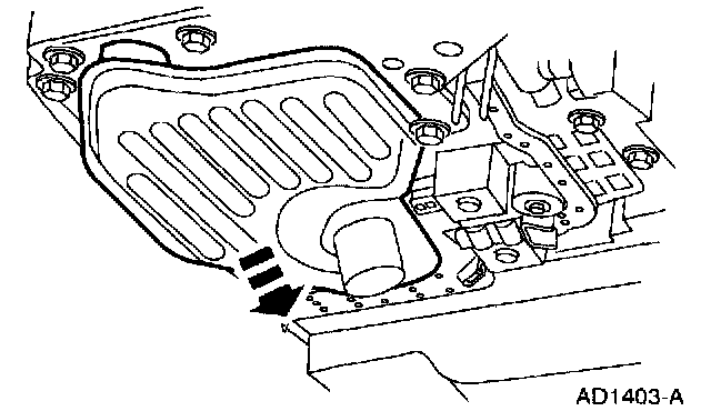 7. Pull down evenly and remove the transmission fluid filter, seal and filter kit.