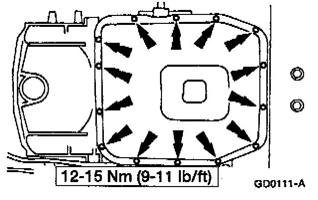 5. Install the transmission fluid pan and gasket.