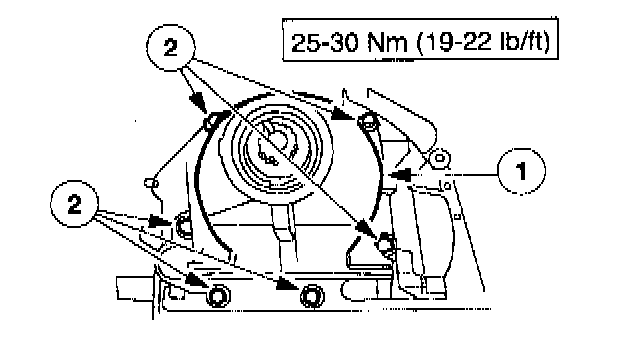 6. Install the two transmission mount nuts.