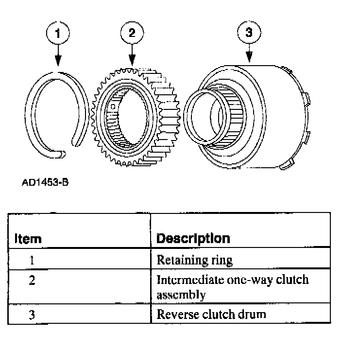 ^ The clutch must rotate counterclockwise when installed on the reverse clutch drum and will make a ratchet sound.