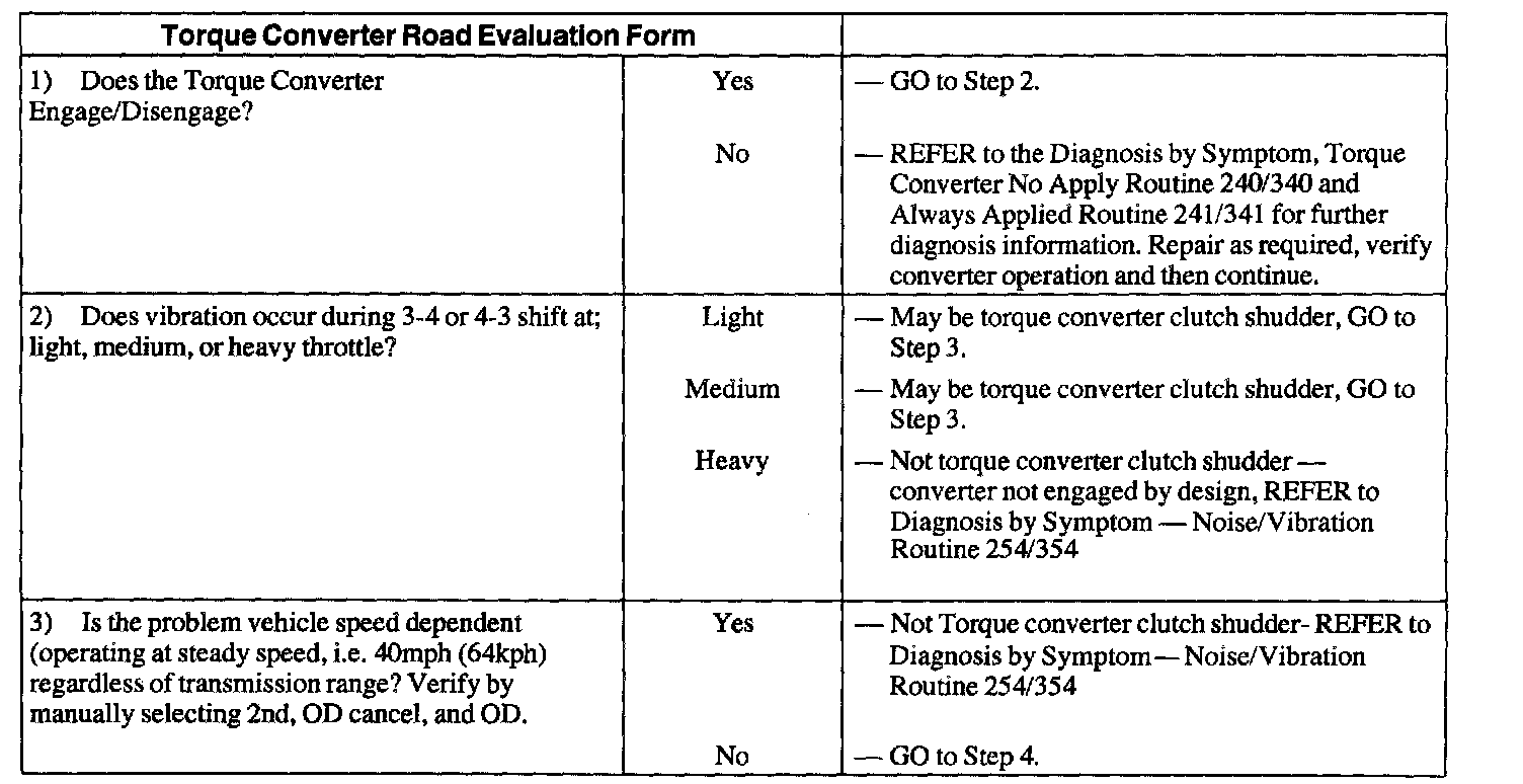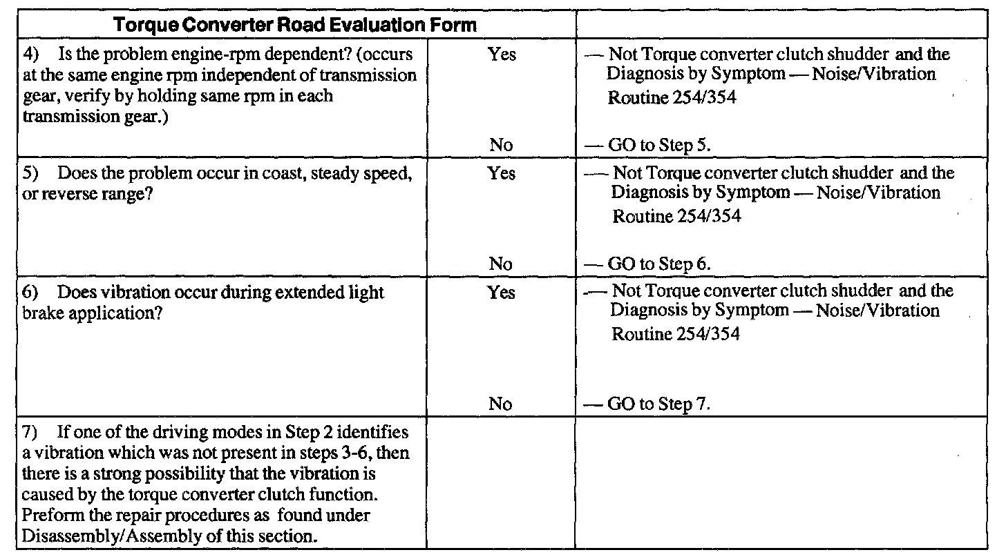 NOTE: The following is a list of common vehicle concerns that have been misdiagnosed as torque converter clutch shudder.