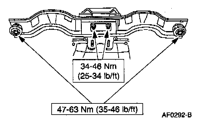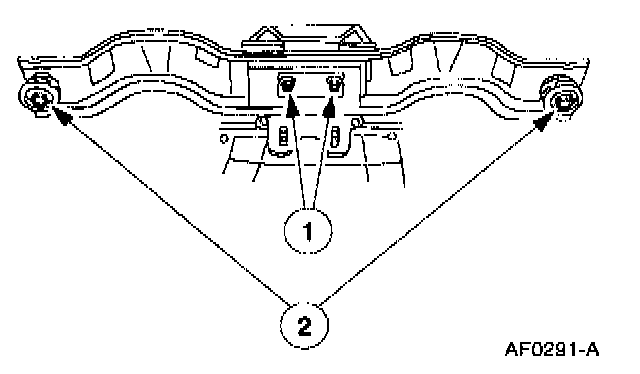 2. Remove the bolts retaining the transmission support crossmember to the body brackets. Remove the transmission support crossmember.