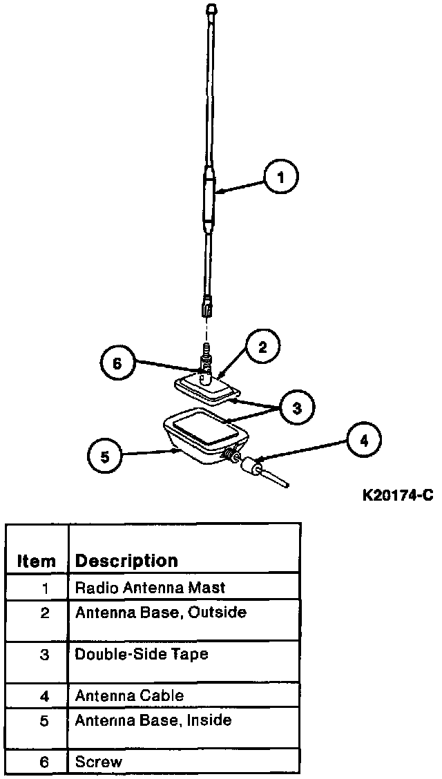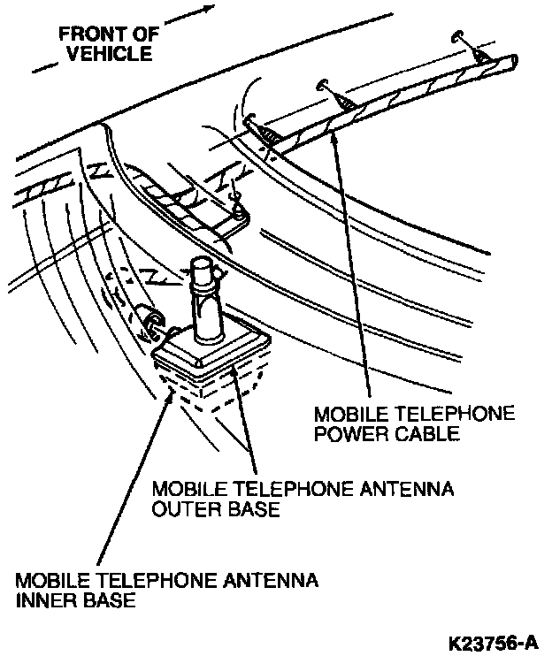 1. Disconnect multi-function control antenna cable from inner base of mobile telephone antenna.