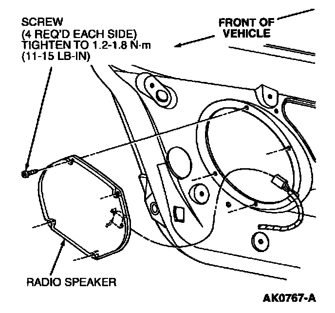 2. Tighten radio speaker retaining screws to 1.2-1.8 N.m (11-15 Lb-In).