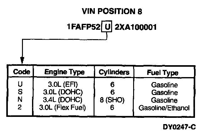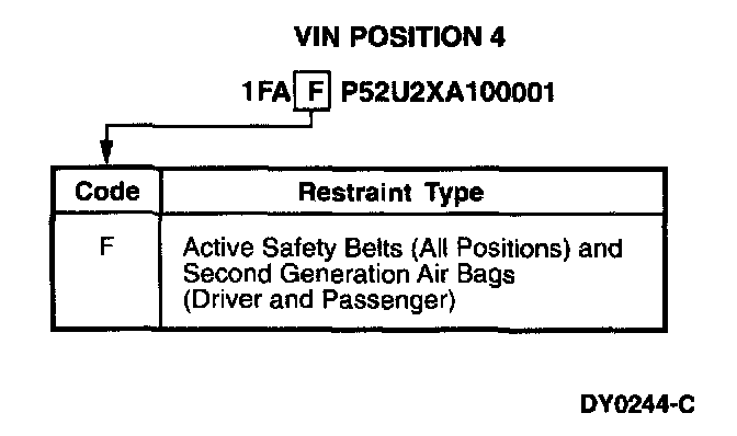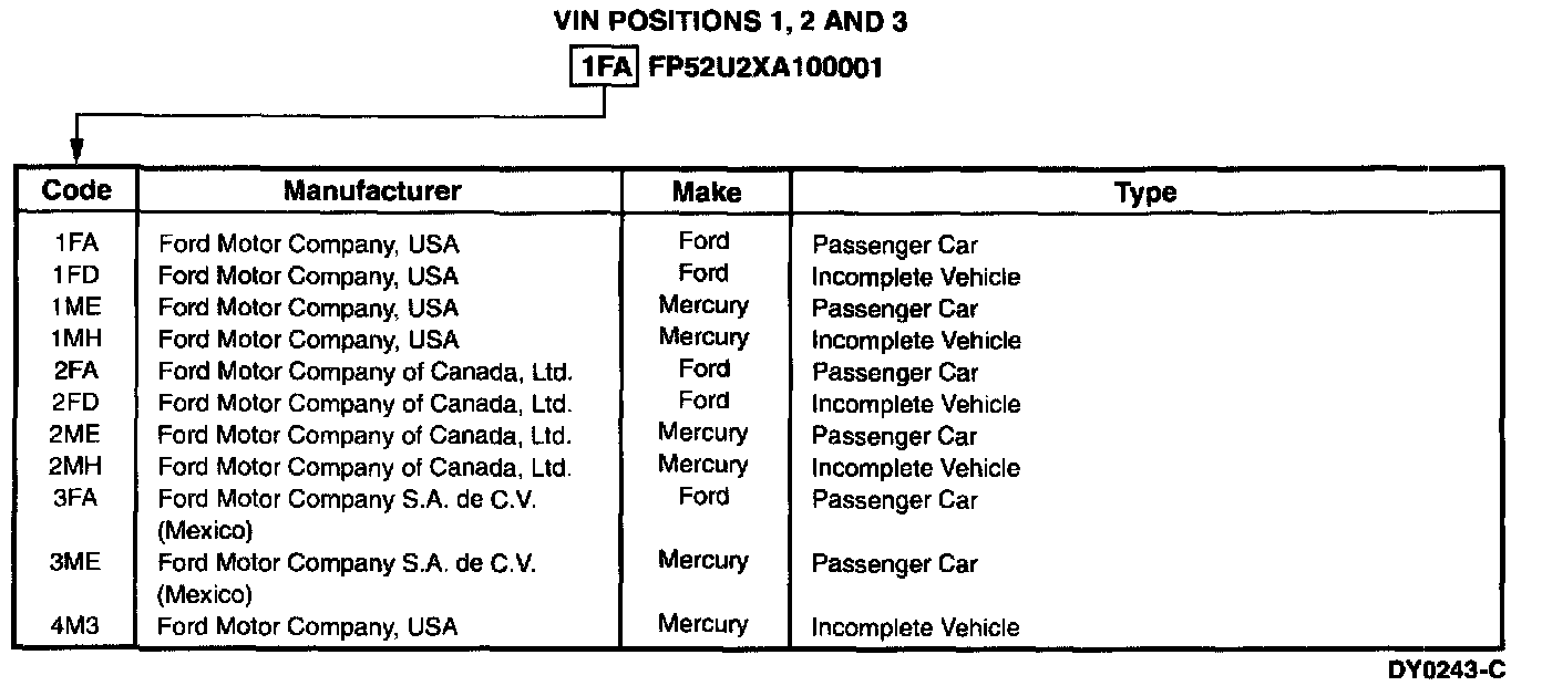 The Vehicle Identification Number (VIN) is a 17-character alpha-numeric vehicle identification number. This number is used for warranty identification of the vehicle and indicates the following: