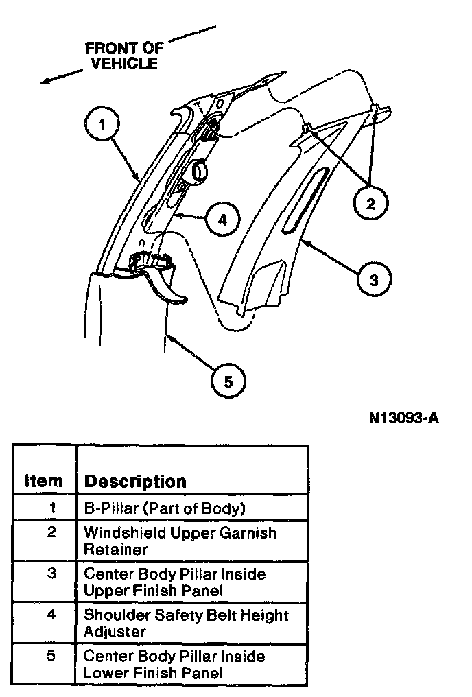 NOTE: Position safety belt anchor tab into original position while feeding safety belt in center body pillar inside upper finish panel.