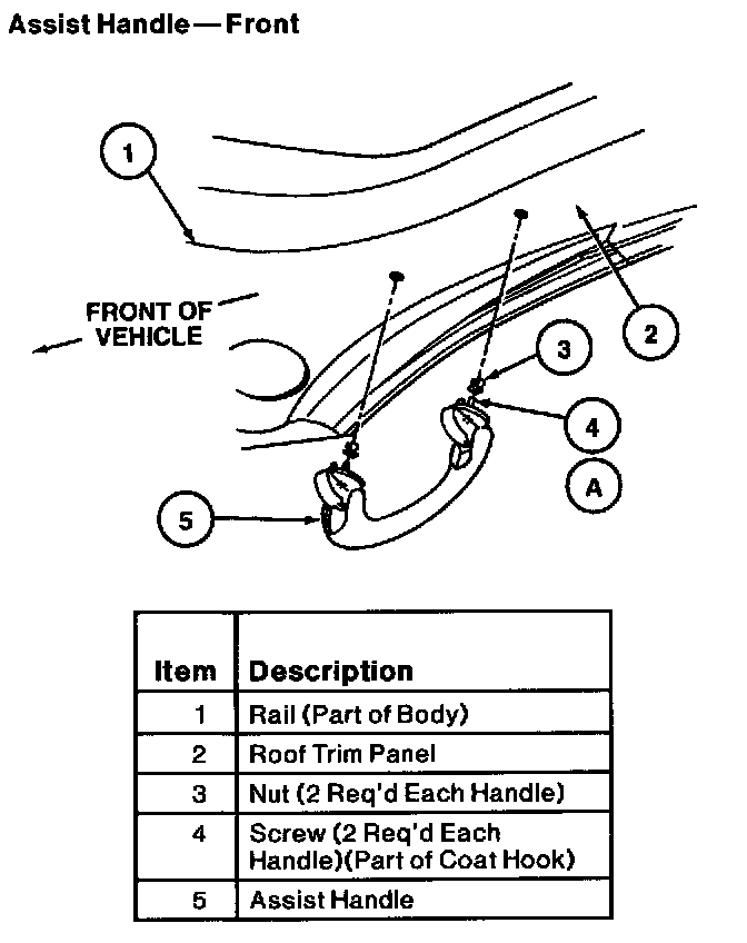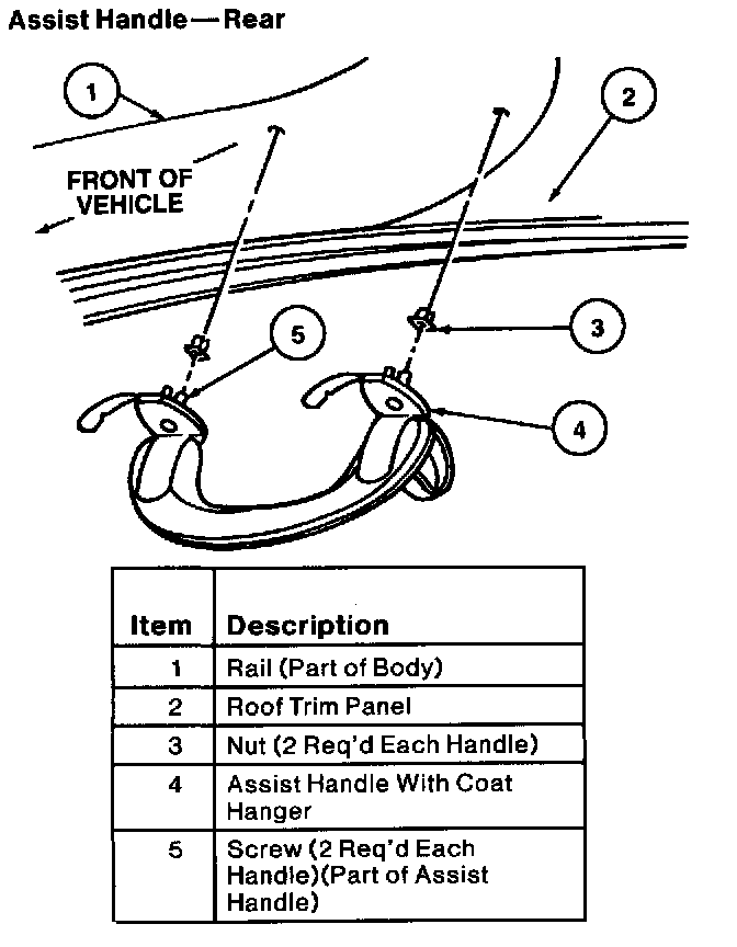Remove roof assist handle retaining screws (two each side). Remove assist handle.