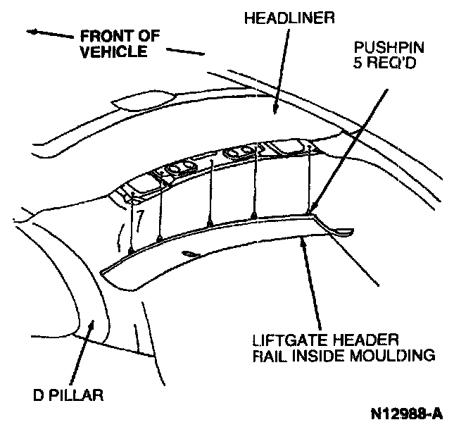 Pull down on liftgate header rail inside moulding to remove.