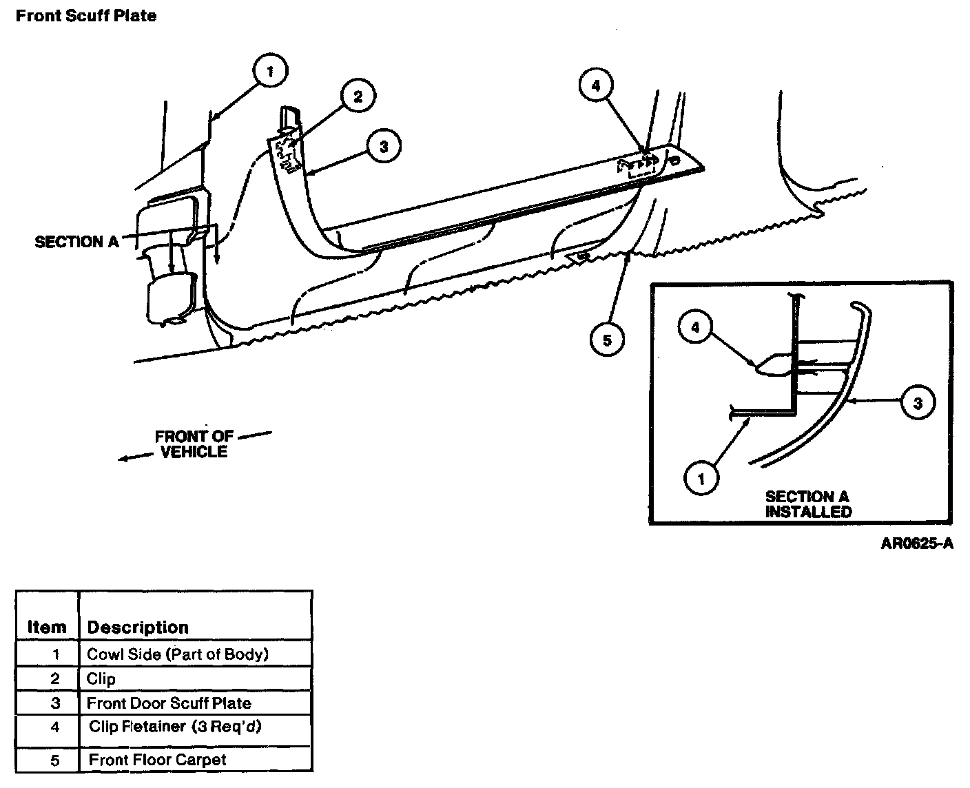 2. Pull up on front door scuff plate to disengage clip retainers from rocker panel.