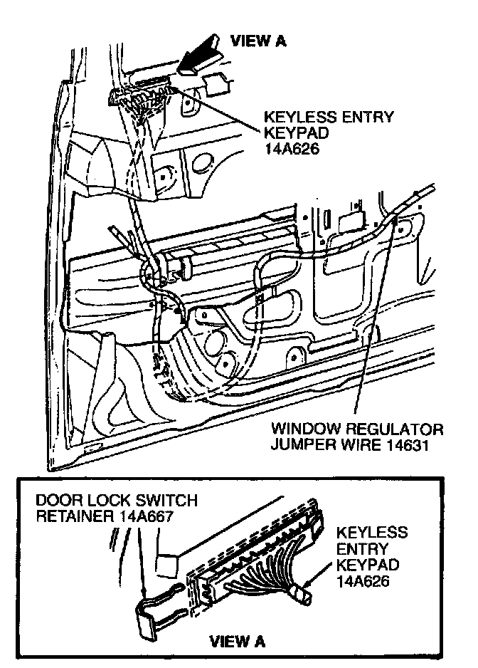 5. Remove keyless entry keypad and wiring harness.
