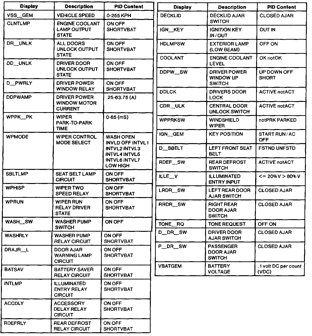 Generic Electronic Module Parameter Identification (PID) Index