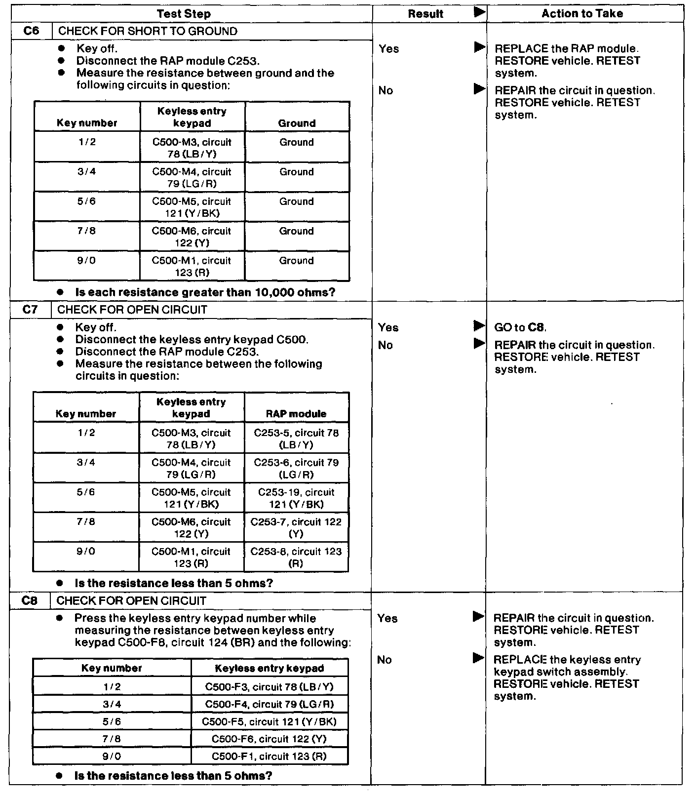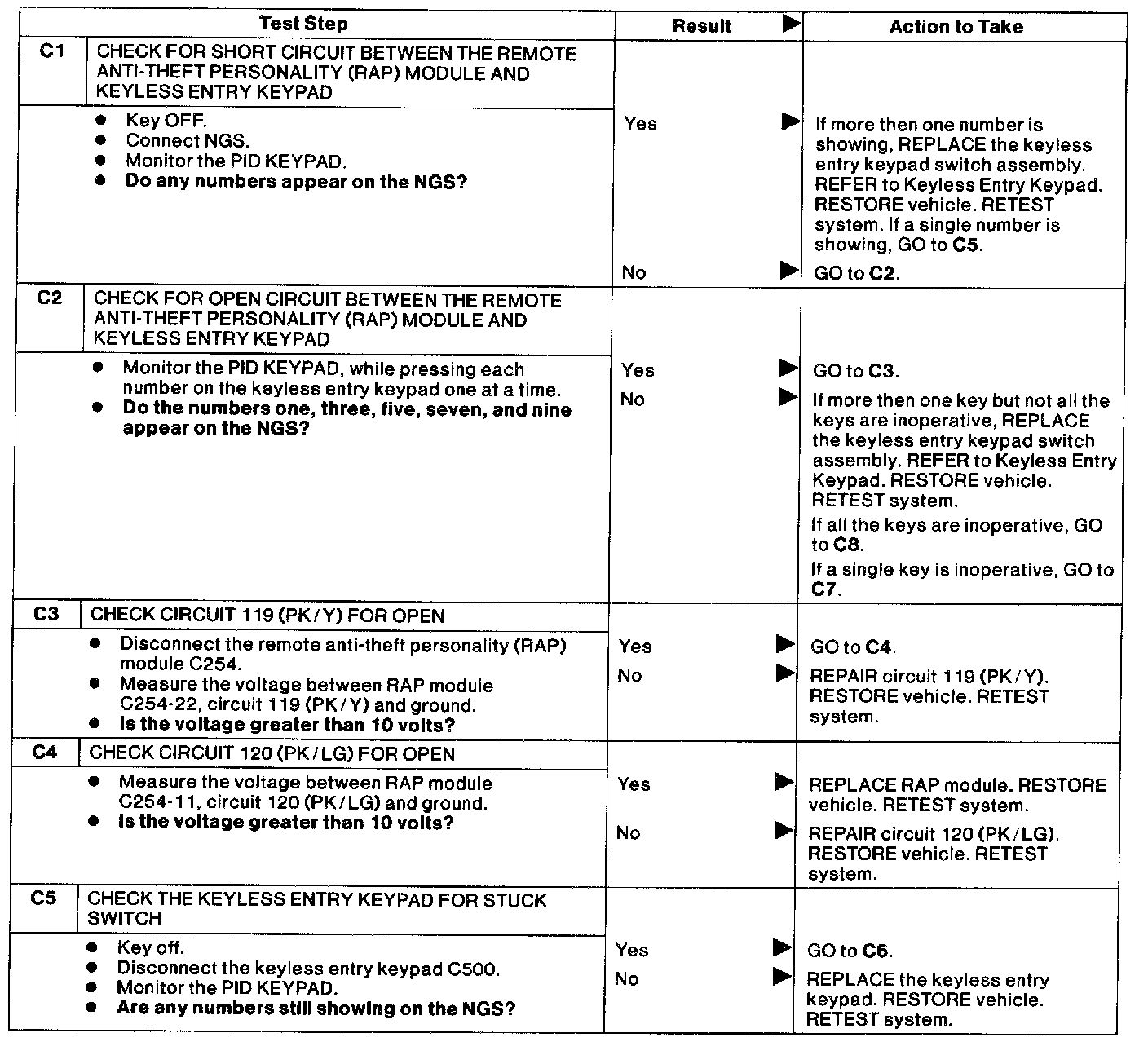 Test C: Doors Do Not Lock or Unlock Using Keyless Entry Keypad