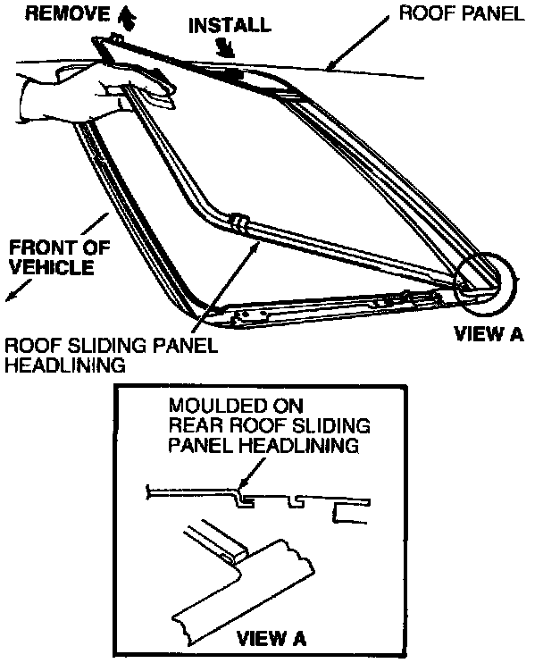 3. Lift roof sliding panel opening shield to clear roof sliding panel headlining.