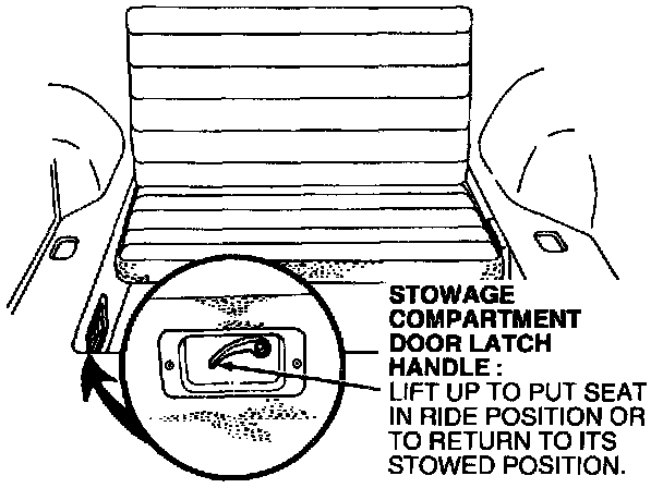 ^ a stowage compartment door latch handle in the load floor which opens the seat to allow the stowage compartment door to be folded forward in the vehicle. Check to see that the auxiliary seat back is latched in the upright position.
