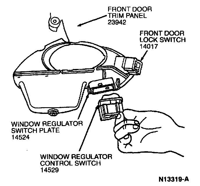 3. Using a small screwdriver, carefully pry front door lock switch out from door trim panel, and remove front door lock switch.