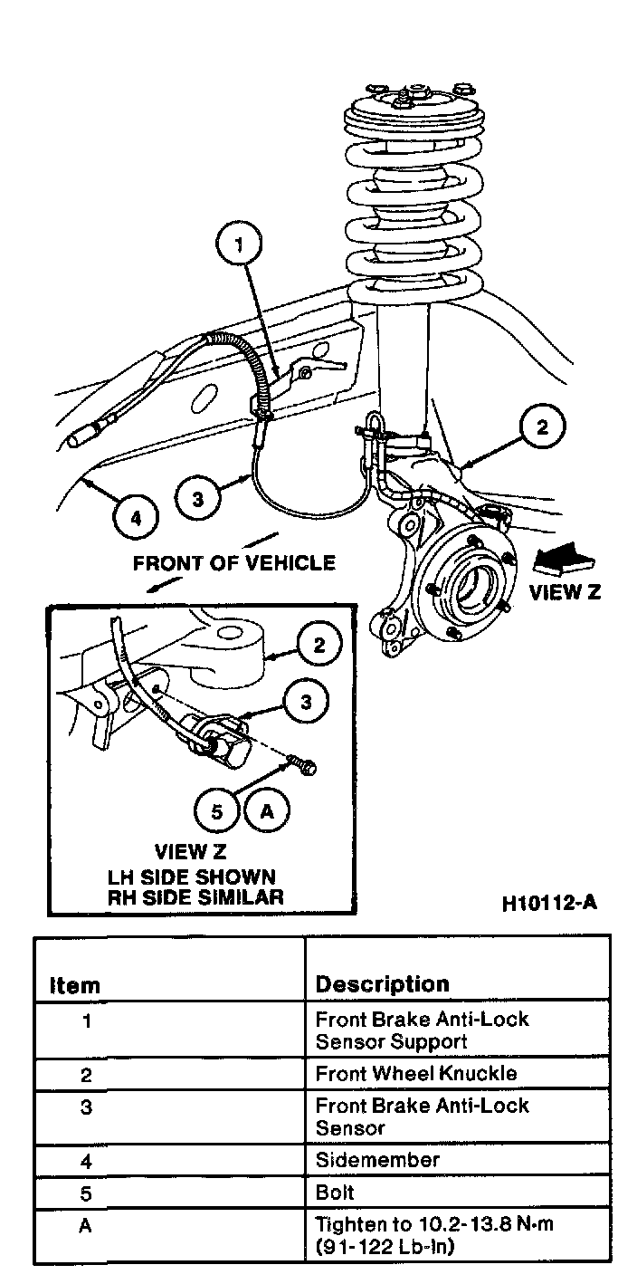 The anti-lock brake control module front brake anti-lock sensors are bolted to the front wheel knuckles. The front brake anti-lock sensor indicators are pressed onto the outer CV joints.