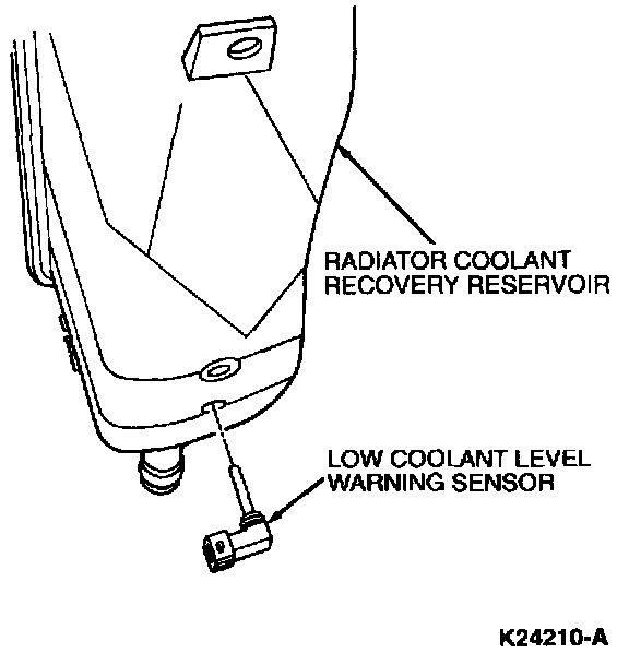 3. Remove low coolant level warning sensor from radiator coolant recovery reservoir by carefully prying out of radiator coolant recovery reservoir with a small screwdriver.
