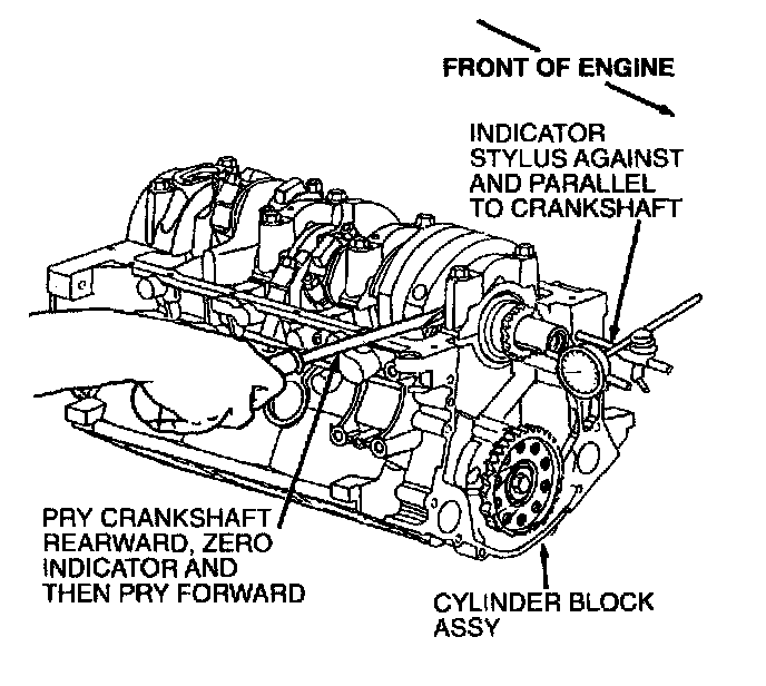 3. Zero the dial indicator. Push crankshaft forward and note reading on dial.