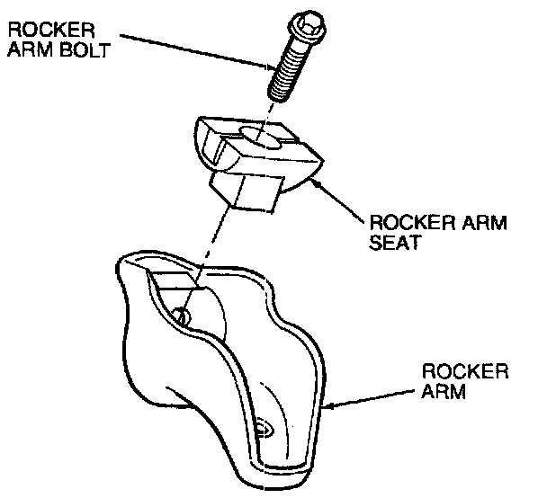 CAUTION: Do not attempt to true-up surfaces by grinding. On pedestal mounted rocker arms, check the rocker arm pad, side rails and rocker arm seats for excessive wear, cracks, nicks or burrs. Check the rocker arm bolt for stripped or broken threads. Replace components as required or engine damage may occur.