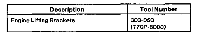 1. Install Engine Lifting Brackets 303-050 (T70P-6000).