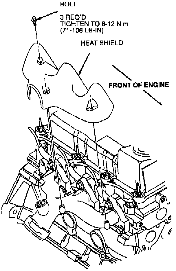 5. Install RH exhaust manifold shield. Tighten retaining bolts to 8-12Nm (71-106 inch lbs.).