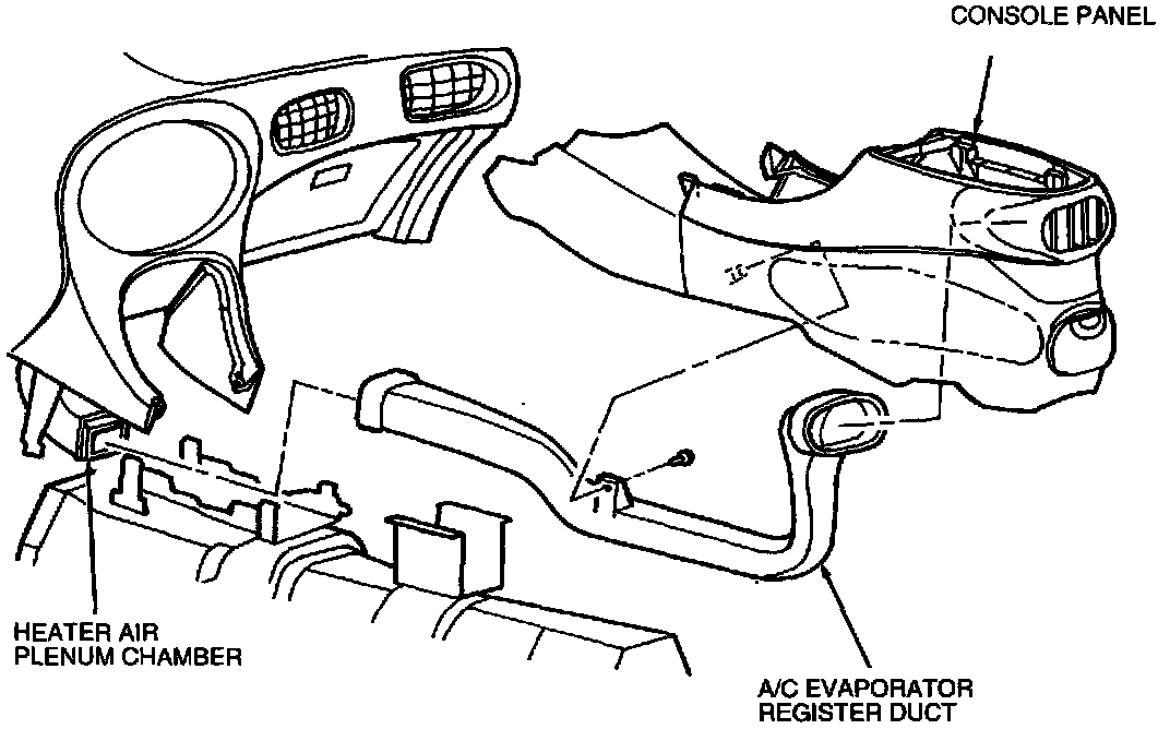 Remove retaining screws and A/C evaporator register duct from console panel.