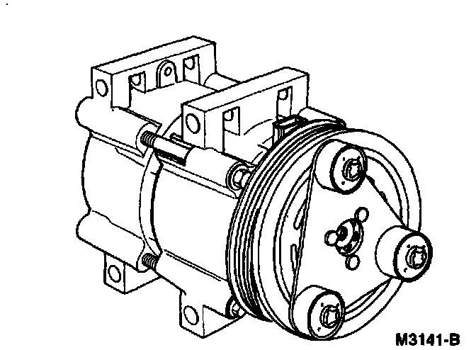 - When battery positive voltage (B+) is applied to the A/C clutch field coil, the clutch disc and hub assembly (which is solidly coupled to the compressor shaft) is drawn rearward by magnetic force toward the A/C clutch pulley (which rotates freely on the compressor front head casting).