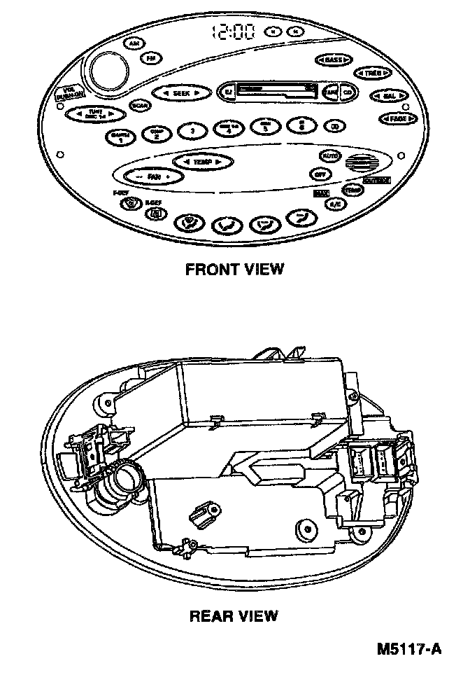 An illumination bulb in the control assembly provides backlighting for the vacuum fluorescent display window. When the panel dim control on the headlamp switch is adjusted, the intensity of the light from this bulb will increase or decrease depending upon the adjustment. (The backlighting on the control assembly, as well as in other instrument panel locations, will dim whenever the headlamp switch is in HEAD).