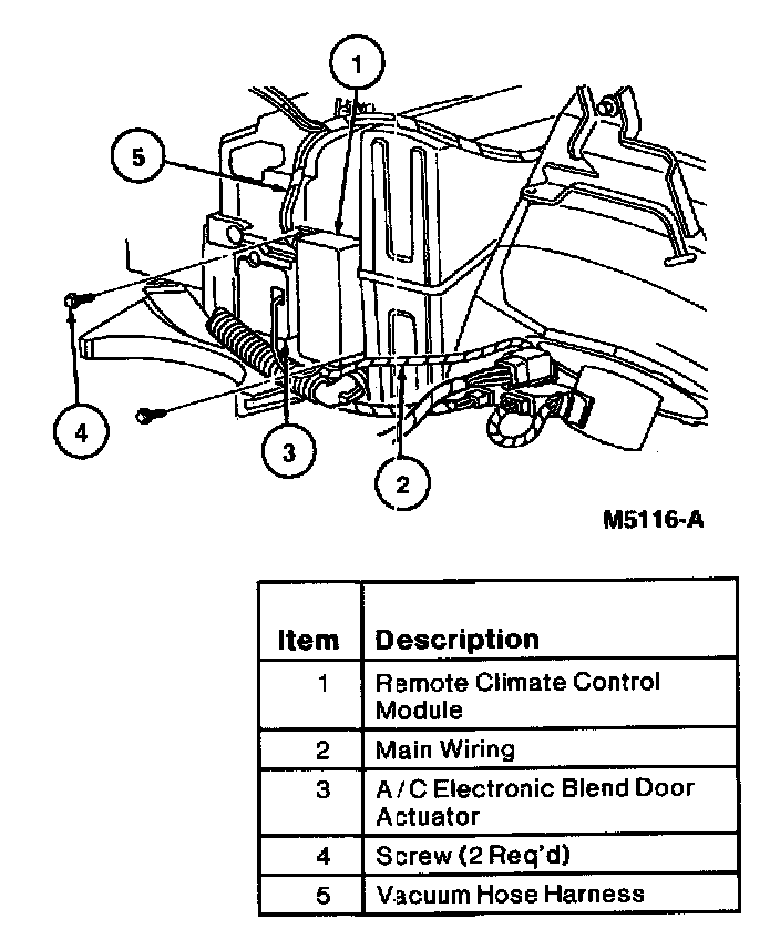 3. Remove two screws retaining remote climate control module to A/C evaporator housing.