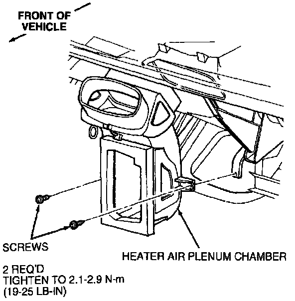 5. Remove two screws retaining heater air plenum chamber to instrument panel.