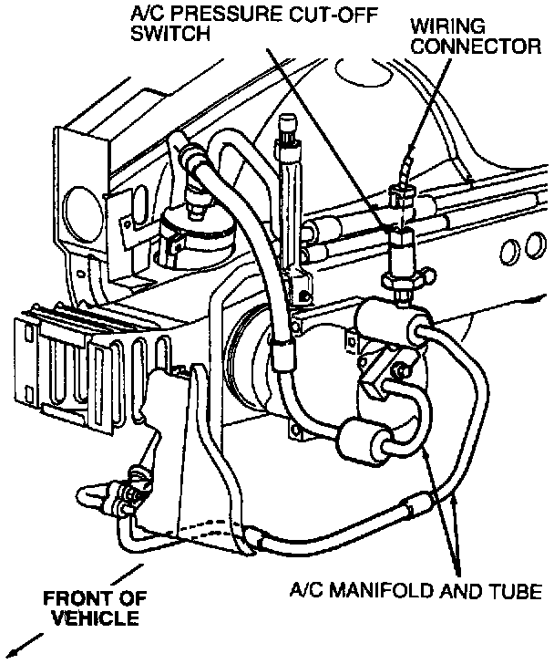 2. Remove A/C pressure cut-off switch from the A/C manifold and tube.